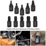 10-delni komplet izvlečnih nastavkov za vijake ponuja širok nabor velikosti, kar zagotavlja, da imate pravo orodje za vsako nalogo izvleke.