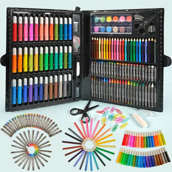 Sprostite svojo ustvarjalnost s tem 150-delnim kompletom za ustvarjanje, ki je idealen za šolske projekte, domače ustvarjanje ali umetniško izražanje.🎨 Vsebuje 36 akvarelnih pisal, 24 svinčnikov, 48 barvic, 12 pigmentov in še več!✨