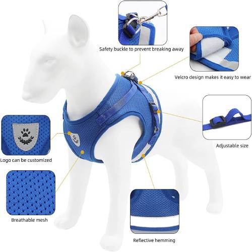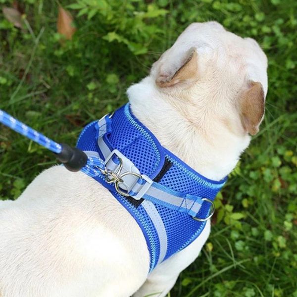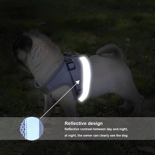 Nastavljiv odsevni pas in povodec za hišne ljubljenčke imata mehko, udobno in zračno mrežasto zasnovo, ki izboljša izkušnjo nošenja vašega ljubljenčka.