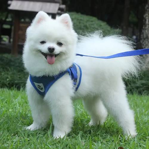 Ta pas in povodec za hišne ljubljenčke sta zasnovana z mrežasto tkanino, ki je nežna, udobna in spodbuja zračnost, kar zagotavlja, da se vaš ljubljenček med nošenjem počuti udobno in lahkotno.