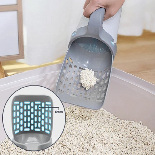 Zajemalka za mačji pesek je opremljena s košarico, ki vsebuje vrečko za iztrebke, zaradi česar je edinstveno in priročno orodje za čiščenje mačjega peska. Ko poberete odpadke, preprosto dvignite košaro in vrečka bo postregla vse iztrebke, pladenj za smeti pa bo čist. Tudi odlaganje odpadkov poteka brez težav in nereda.
