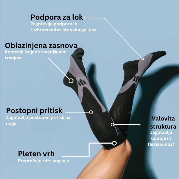 Te nogavice pomagajo izboljšati pretok krvi, kar pomeni manj utrujenosti in več energije za ves dan. Popolne so za dolge ure na nogah ali intenzivno telesno dejavnost.