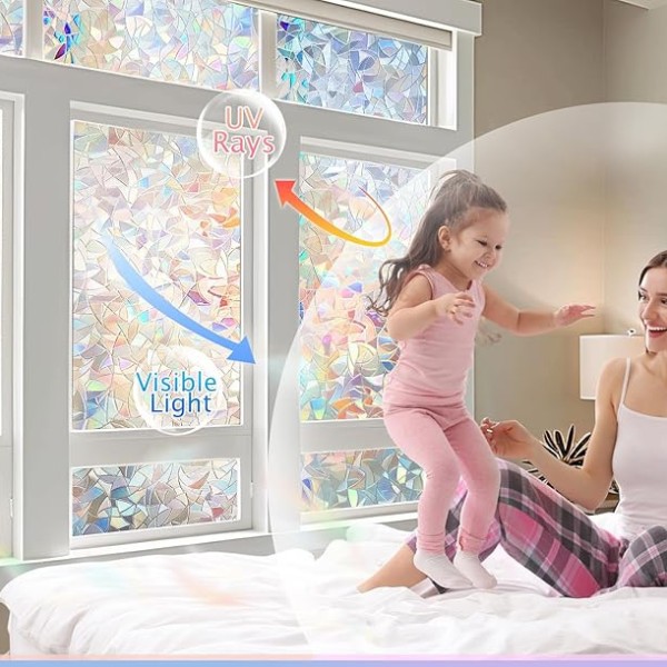 Ko sončna svetloba pade na folijo, ta ustvari očarljivo mavrico barv po prostoru, vendar ne prepreči naravne svetlobe. Ta folija se dobro obnese v vseh prostorih – v dnevnih sobah, kopalnicah, pisarnah in celo na steklenih vratih, zato je vsestranska rešitev za različne prostore.