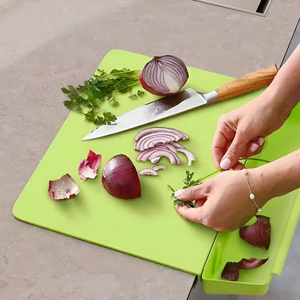 Praktična deska za rezanje s posodo za organske odpadke. Za vedno urejen kuhinjski pult.