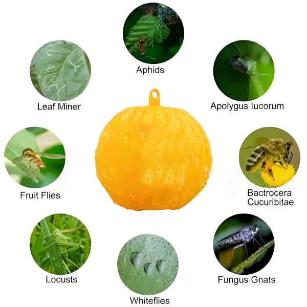 Znebite se nadležnih insektov brez uporabe močnih insekticidov! Na svoj vrt obesite lepljive kroglice BUGIORB, da zaščitite svoja dragocena sadna drevesa in zelenjavo. Te lepljive kroglice pritegnejo in ujamejo škodljivce, kot so vinske mušice, listne uši in bele mušice , ki lahko uničijo vaš pridelek. Preprosto obesite kroglice blizu svojih rastlin in pustite, da njihova svetlo rumena barva in močno lepilo opravita svoje delo.