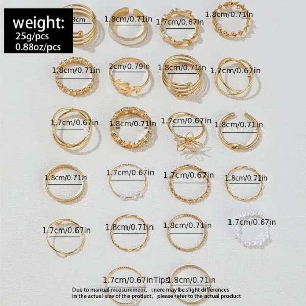 Ta komplet prstanov, ki je na voljo v zlatih odtenkih je popoln dodatek k vaši zbirki dodatkov, s katerim lahko brez težav izrazite svoj edinstveni slog. 💍✨