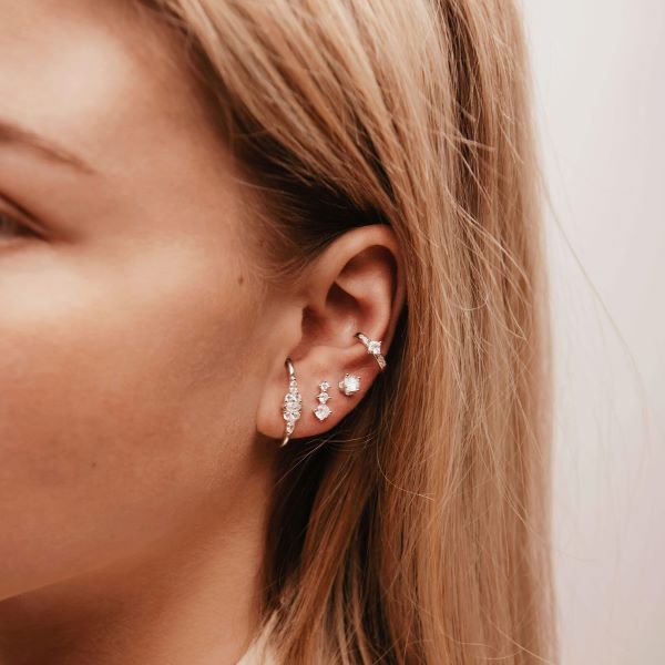 Kot pove že ime Bella, ta uhan izraža brezčasno lepoto in zagotavlja očarljiv videz. Je edinstvene oblike in ga je mogoče med nošenjem obračati v različne smeri. Uhan je na voljo kot en kos in je primeren za kombiniranje z vsemi drugimi uhani.